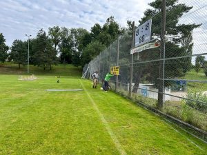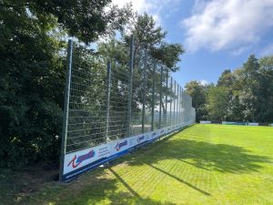 Der alte Ballfangzaun aus Holz hat ausgedient: Da die Masten bereits teilweise morsch geworden waren, wurde er nun durch einen modernen Ballfangzaun aus robusten Stahlgittermatten ersetzt. Dieser ist nicht nur deutlich höher, sondern bietet auch langfristig mehr Sicherheit und Stabilität.