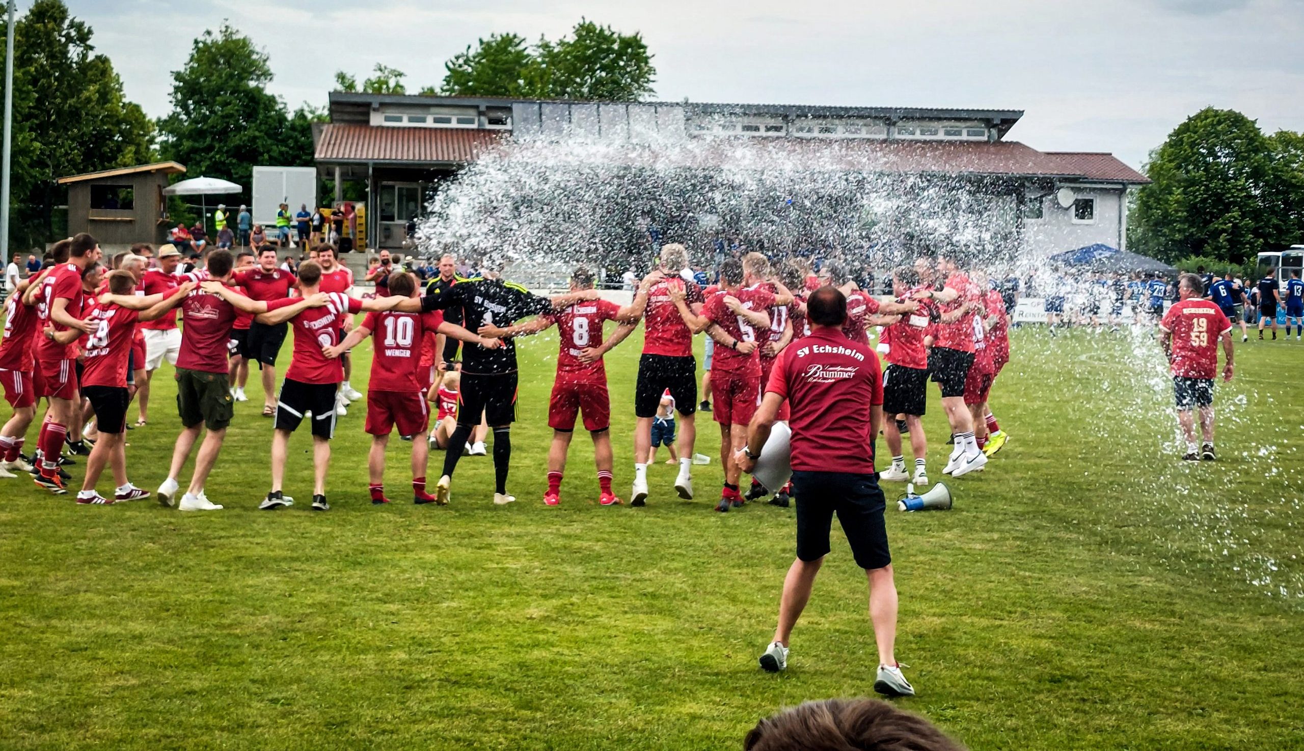 Diese kam am Mittwochabend in Altenmünster, als Echsheim wie auch die Sportfreunde aus Bachern per Fanbus anreiste, um die SpVgg Langerringen gegen den FSV Reimlingen anzufeuern. Mit Erfolg: Langerringens 3:0-Sieg machte vier Aufstiegsplätze frei – genug für alle Sieger der ersten Relegationsrunde. Jubel brach aus, als der Abpfiff ertönte. Fans und Spieler lagen sich in den Armen, ein emotionaler Moment, den SVE-Vorsitzender Daniel Sturm als „Highlight für den Amateursport“ bezeichnete.